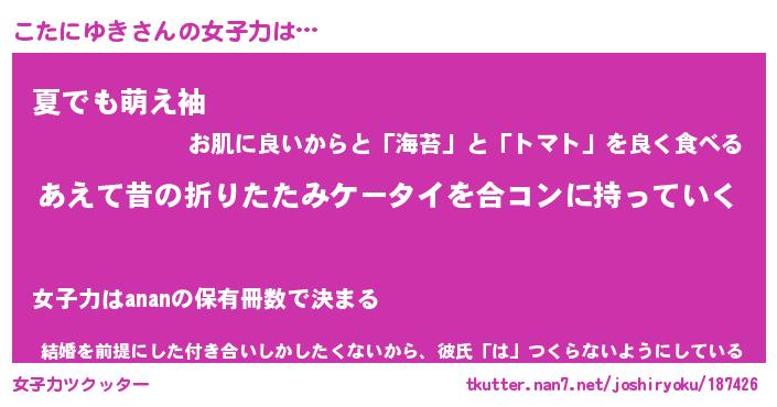 | 恥ずかしいあだ名 | 『プリティーこたにゆき』『こたっちょ』 |