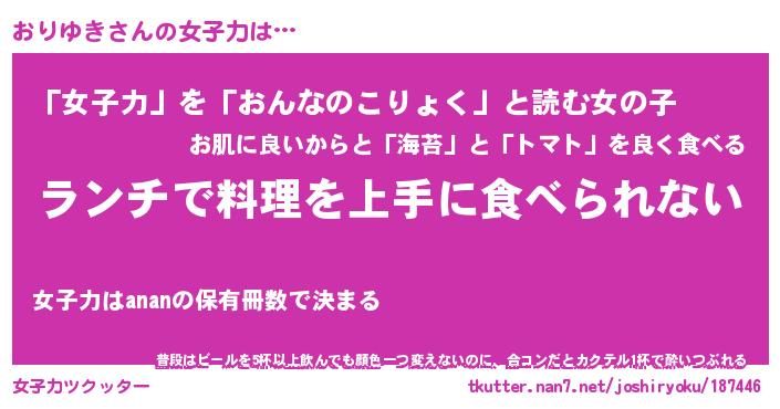 | 恥ずかしいあだ名 | 『プリティーおりゆき』『おりっちょ』 |