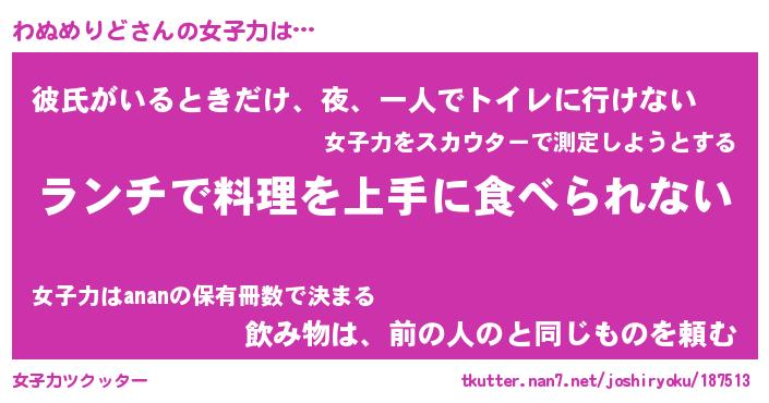 | ヘコむあだ名 | 『わぬにゅー』『つくし』 |