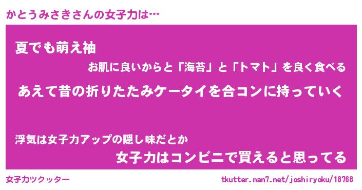 | ツイッター | かとうみさきさんのツイッターID『konnyaku_man』 |