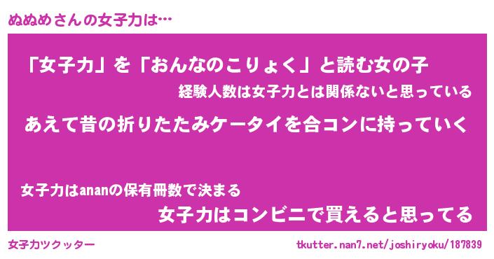 | ファンタジー風あだ名 | 『ヌヌフェル』『エターナルヌヌメー』 |
