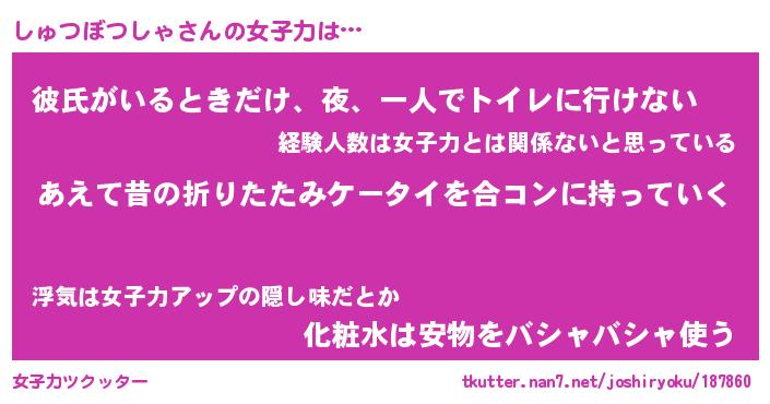 | ヘコむあだ名 | 『しゅっふぃ~』『つくし』 |