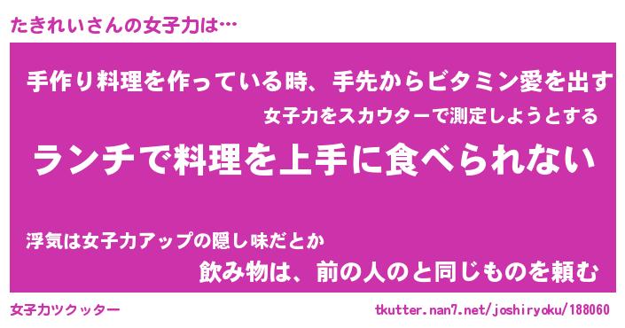 | ファンタジー風あだ名 | 『タキフェル』『エターナルタキレイー』 |