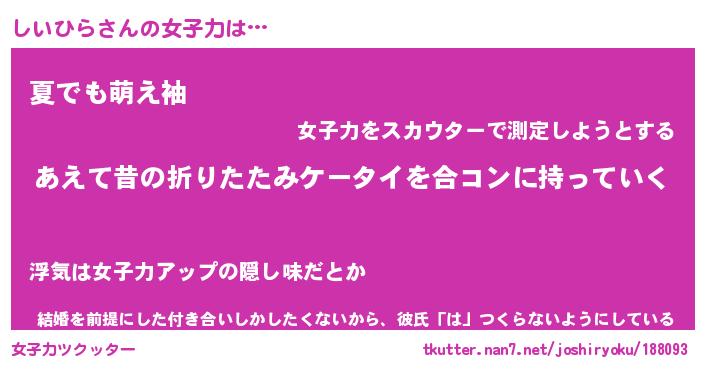 | ヘコむあだ名 | 『しいもー』『酢こんぶ』『しいっ子』 |