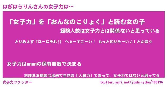 | 恥ずかしいあだ名 | 『プリティーはぎはらりん』『はぎっちょ』 |