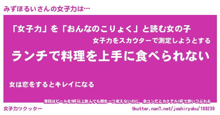 | ファンタジー風あだ名 | 『ミズフェル』『エターナルミズホルイー』 |