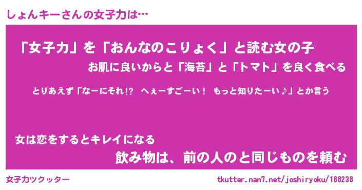 | ヘコむあだ名 | 『しょにゅー』『酢こんぶ』 |