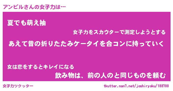 | ヘコむあだ名 | 『アンっふぃ~』『なまこ酢』 |