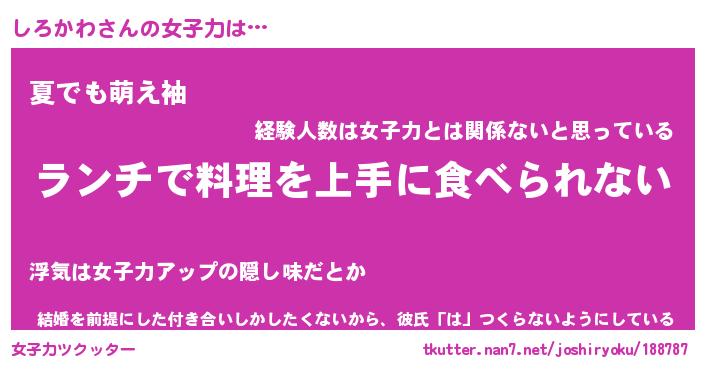 | ヘコむあだ名 | 『しろふぇ~』『牛乳』『しろっぺ』 |