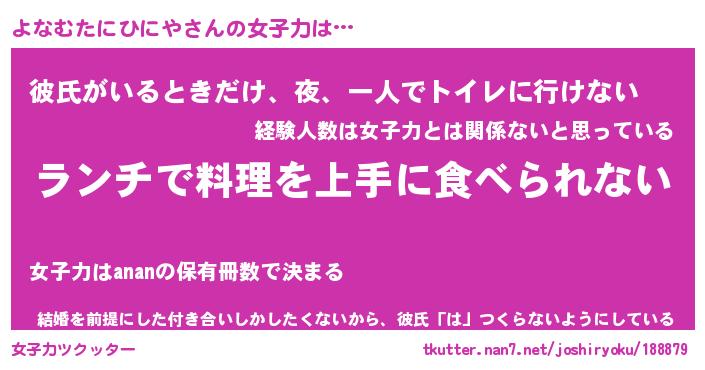 | ヘコむあだ名 | 『よなふぇ~』『牛乳』『よなお』 |