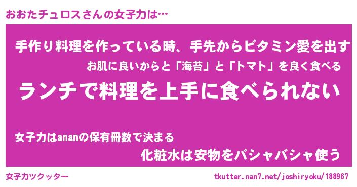 | 女子向けラノベタイトル風あだ名 | 『誰かこのおおたチュロスを説明してください! ~契約から始まるウェディング~』 |