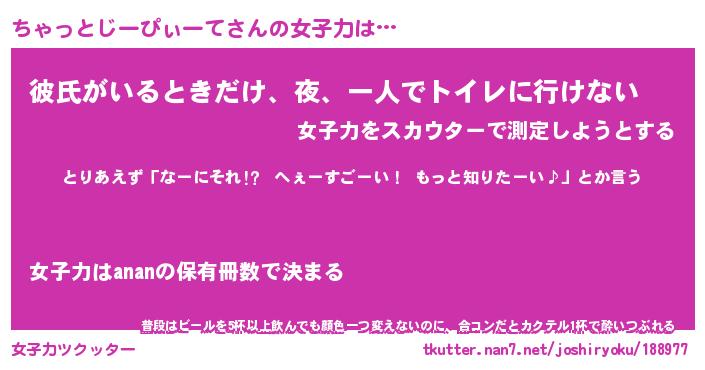 | 恥ずかしいあだ名 | 『プリティーちゃっとじーぴぃーて』 |