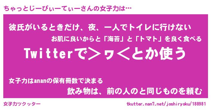| ヘコむあだ名 | 『ちゃっふぃ~』『豆乳』『ちゃを』 |