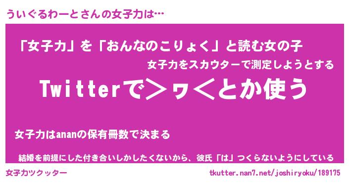 | ポケモン風あだ名 | 『ウイチュウ』『ウイグダネ』 |