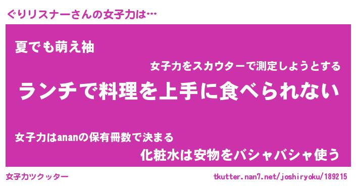 | ヘコむあだ名 | 『ぐりにゅー』『酢こんぶ』『ぐりを』 |