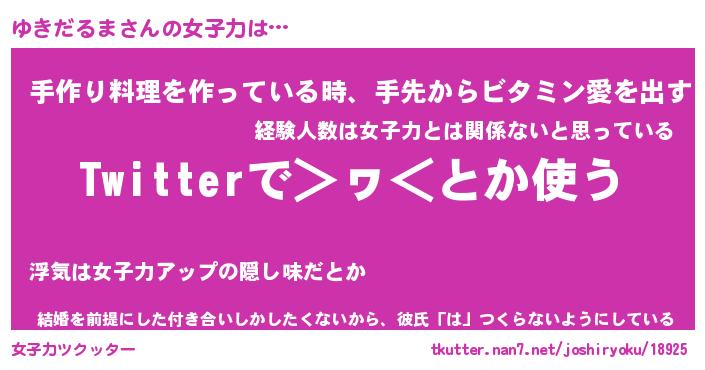 | ファンタジー風あだ名 | 『ユキフェル』『エターナルユキダルマー』 |