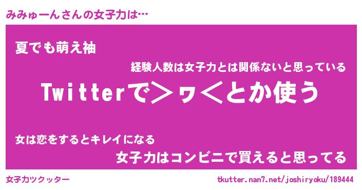 | 男性向けラノベタイトル風あだ名 | 『みみゅーんの憂鬱』 |