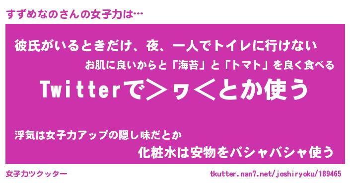 | ファンタジー風あだ名 | 『スズフェル』『エターナルスズメナノー』 |