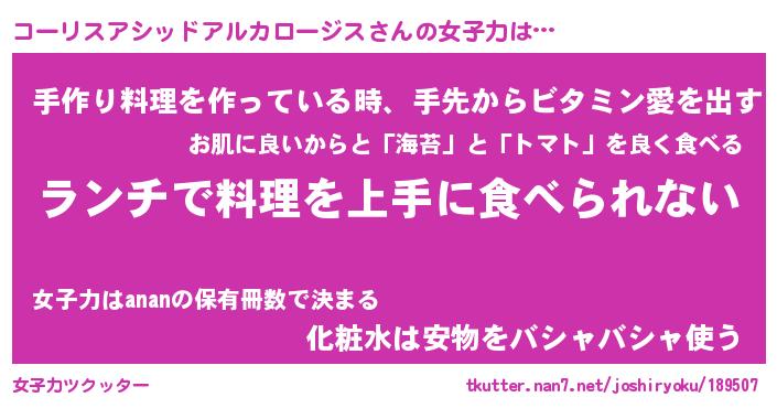| 女子向けラノベタイトル風あだ名 | 『誰かこのコーリスアシッドアルカロージスを説明してください! ~契約から始まるウェディング~』 |