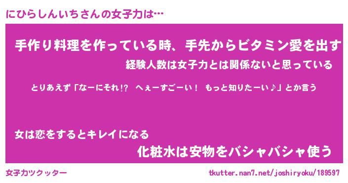 | 恥ずかしいあだ名 | 『プリティーにひらしんいち』『にひちん』 |