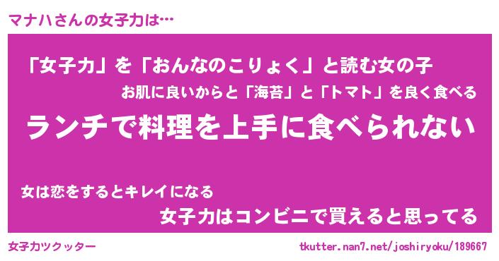 | ヘコむあだ名 | 『マナふぇ~』『レバニラ』 |