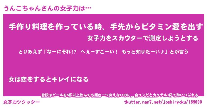 | 料理風あだ名 | 『節約★うんこちゃんと油揚げの玉子丼』 |