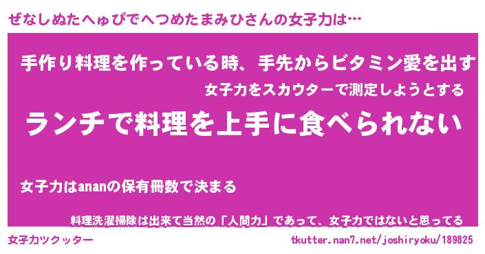 | 料理風あだ名 | 『ネギたっぷりぜなしぬたへゅぴでへつめたまみひの南蛮漬け』 |