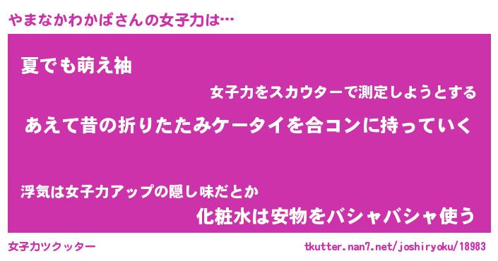 | 胡散臭い通販商品みたいなあだ名 | 『必ず成功する霊験あらたかなお札…その名も「やまなかわかば」』 |