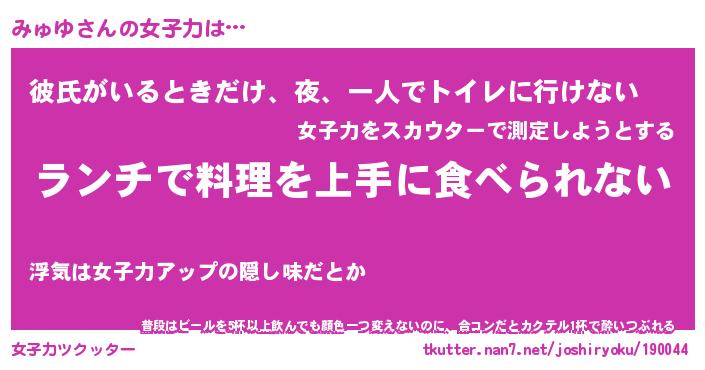 | 恥ずかしいあだ名 | 『プリティーみゅゆ』『みゅっちょ』 |