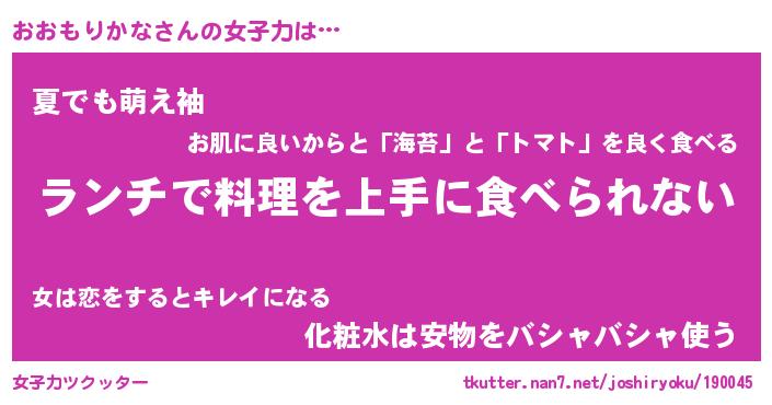 | 男性向けラノベタイトル風あだ名 | 『オオモリカナアートオンライン』 |