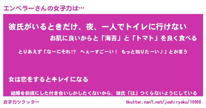 | 恥ずかしいあだ名 | 『プリティーエンペラー』『エンっちょ』 |