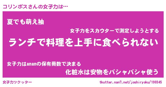 | ヘコむあだ名 | 『コリふぇ~』『なまこ酢』 |