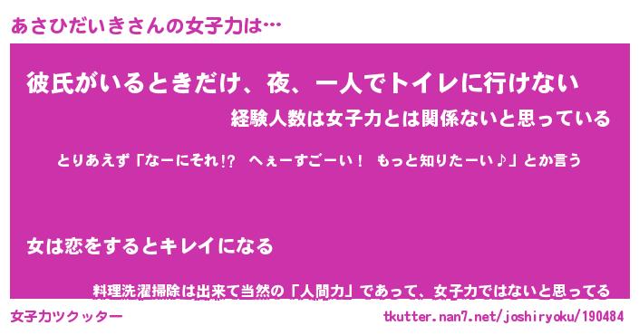 | ヘコむあだ名 | 『あさもー』『豆乳』『あさぷりん』 |