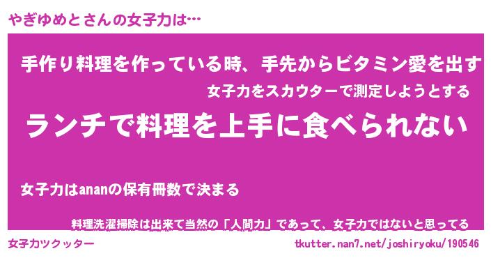 | ファンタジー風あだ名 | 『ヤギフェル』『エターナルヤギユメトー』 |