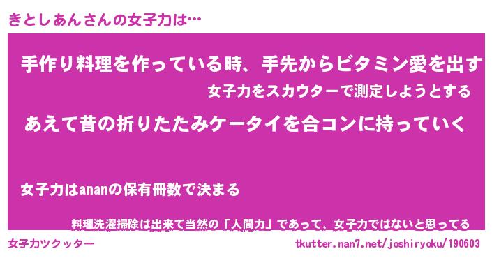 | ヘコむあだ名 | 『きとにゅー』『つくし』『きとっぺ』 |