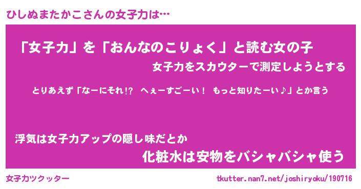 | 胡散臭い通販商品みたいなあだ名 | 『億万長者になれるブレスレット…その名も「ひしぬまたかこ」』 |