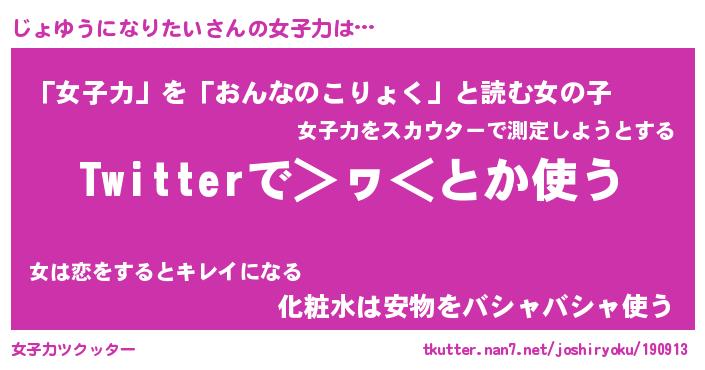 | 男性向けラノベタイトル風あだ名 | 『じょゆうになりたいの憂鬱』 |