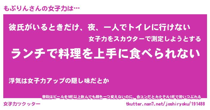 | ヘコむあだ名 | 『もぷにー』『つくし』『もぷっぺ』 |