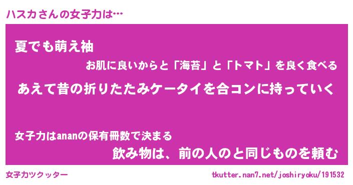 | ヒーロー風カッコイイあだ名 | 『スーパーハスカ』『ウルトラハスカマン』 |
