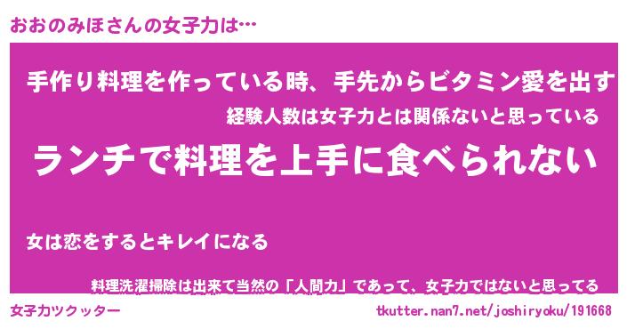 | 肩書あだ名 | 『おおのみほCEO』『おおのみほ大統領』 |