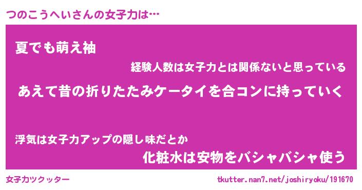 | 胡散臭い通販商品みたいなあだ名 | 『必ず成功する霊験あらたかなお札…その名も「つのこうへい」』 |