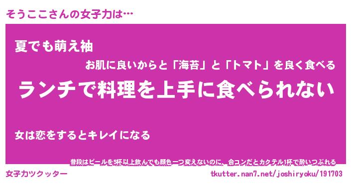 | ファンタジー風あだ名 | 『ソウフェル』『エターナルソウココー』 |