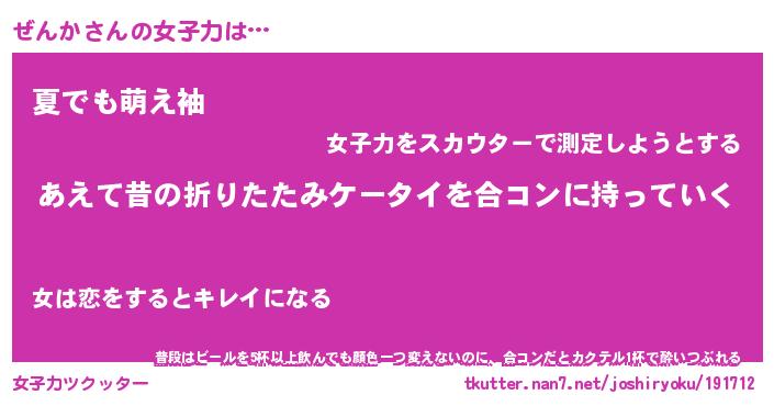 | 意味不明あだ名 | 『ペロリンぜんか』『ぜんかフォーエバー』 |