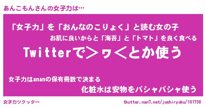 | 男性向けラノベタイトル風あだ名 | 『あんこもんの憂鬱』 |
