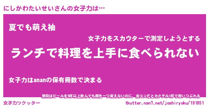 | 胡散臭い通販商品みたいなあだ名 | 『億万長者になれる水晶球…その名も「にしかわたいせい」』 |
