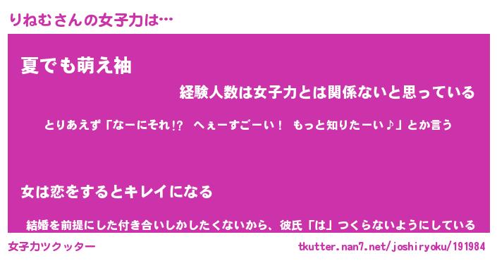 | 意味不明あだ名 | 『ペロリンりねむ』『りねむフォーエバー』 |