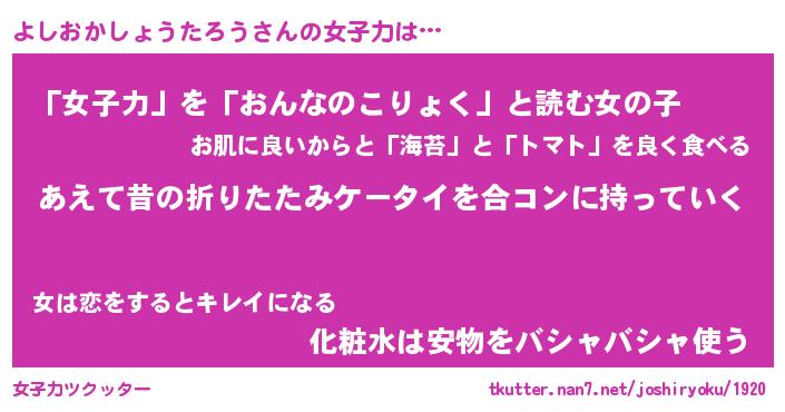 | 胡散臭い通販商品みたいなあだ名 | 『必ず成功する水晶球…その名も「よしおかしょうたろう」』 |