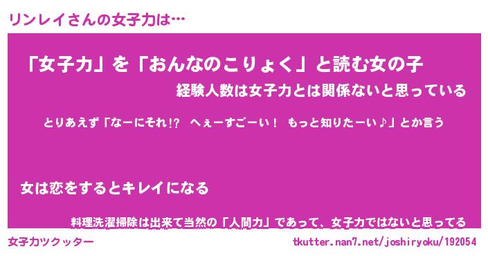 | ファンタジー風あだ名 | 『リンフェル』『エターナルリンレイー』 |