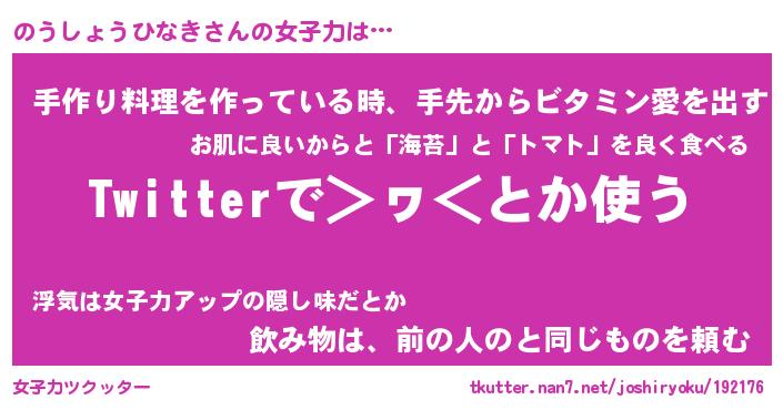 | ヘコむあだ名 | 『のうふぇ~』『豆乳』『のうっ子』 |