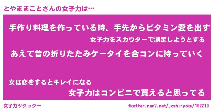 | 胡散臭い通販商品みたいなあだ名 | 『必ず成功するブレスレット…その名も「とやままこと」』 |